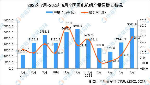 2024年上半年全国各省市发电机组产量排行榜